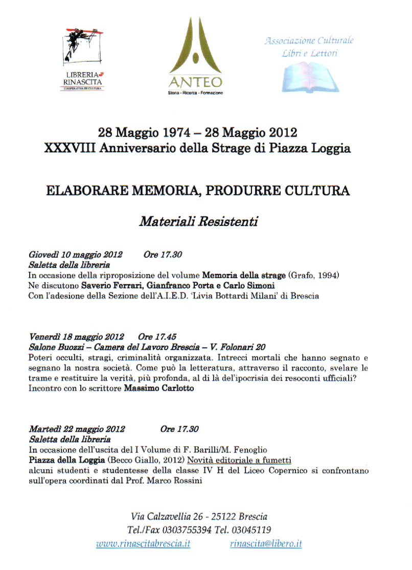 In occasione della riproposizione del volume Memoria della Strage (Grafo, 1994) ne discutono Saverio Ferrari, Gianfranco Porta e Carlo Simoni.